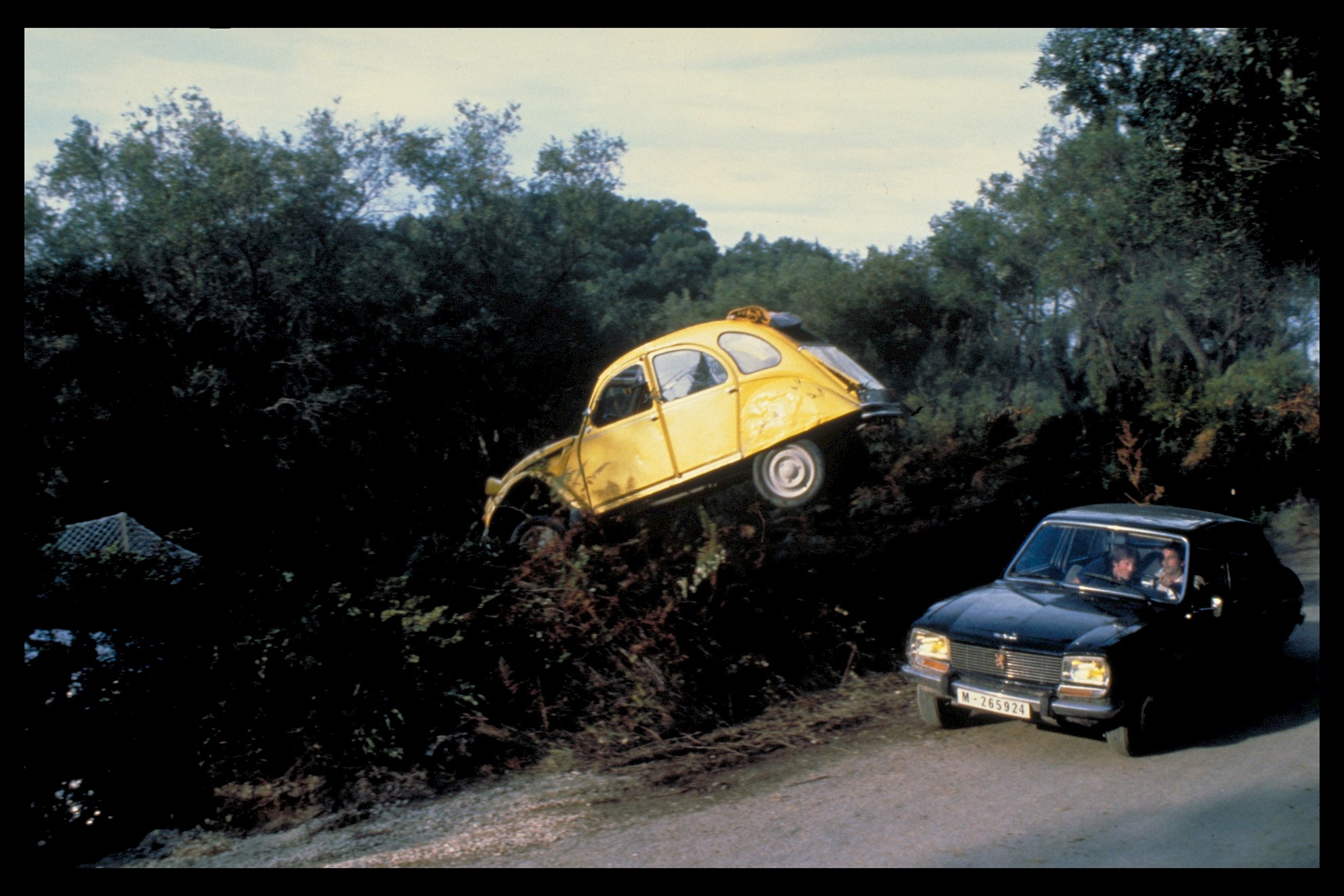 The low-power, low-cost Citroën 2CV was a staple of French life, developed for rural transportation. By the 1970s, the 2CV was powered by a 602cc flat-twin engine mustering around 33 bhp. The main hero vehicle used in filming featured a larger 1.1-litre engine that was lifted from the Citroën GS. Shot in Corfu over 12 days in late September and early October 1980, the chase sequence marked the franchise debut of Remy Julienne as stunt driver and arranger. A number of 2CVs were used in the sequence and four are known to have survived filming, while at least two more were definitely scrapped after the production wrapped.