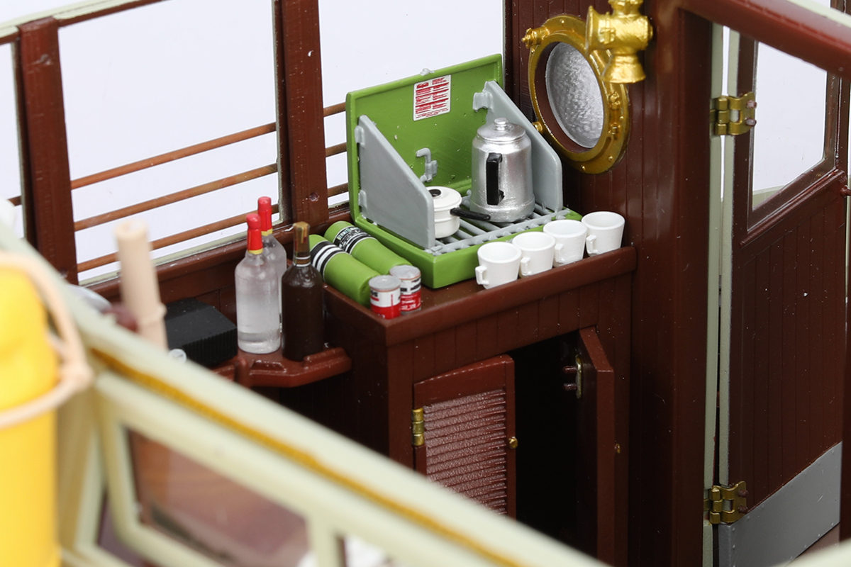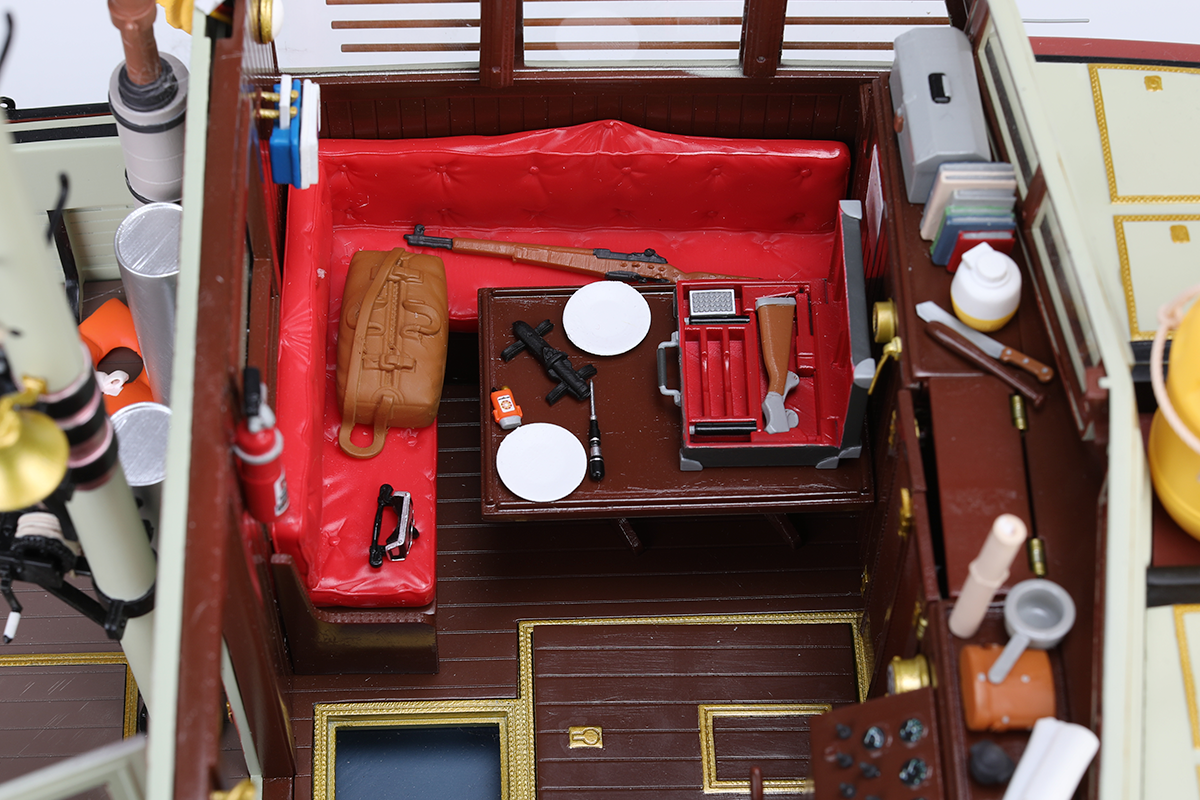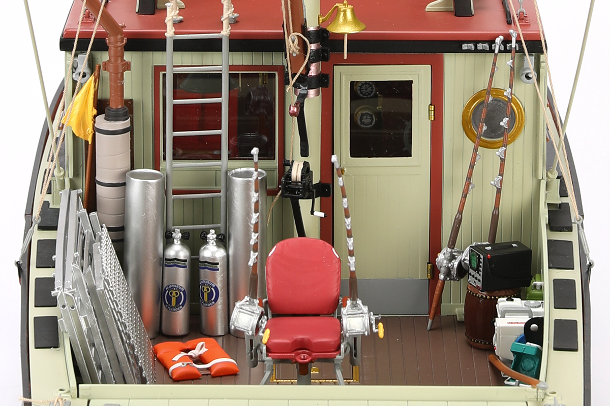 This model kit features removable parts to allow access to the all-important galley, and accessories including shark cage, Quint's toolbox, Hooper's scientific electronics, and many more...