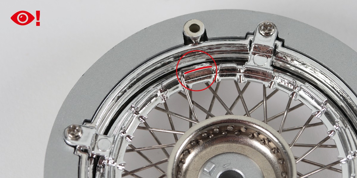 You have two options for building the wheels on your model – the easy-build or the regular version. The easy-build uses pre-fitted spokes, while the regular version uses individual spokes that thread through the wheel centre.