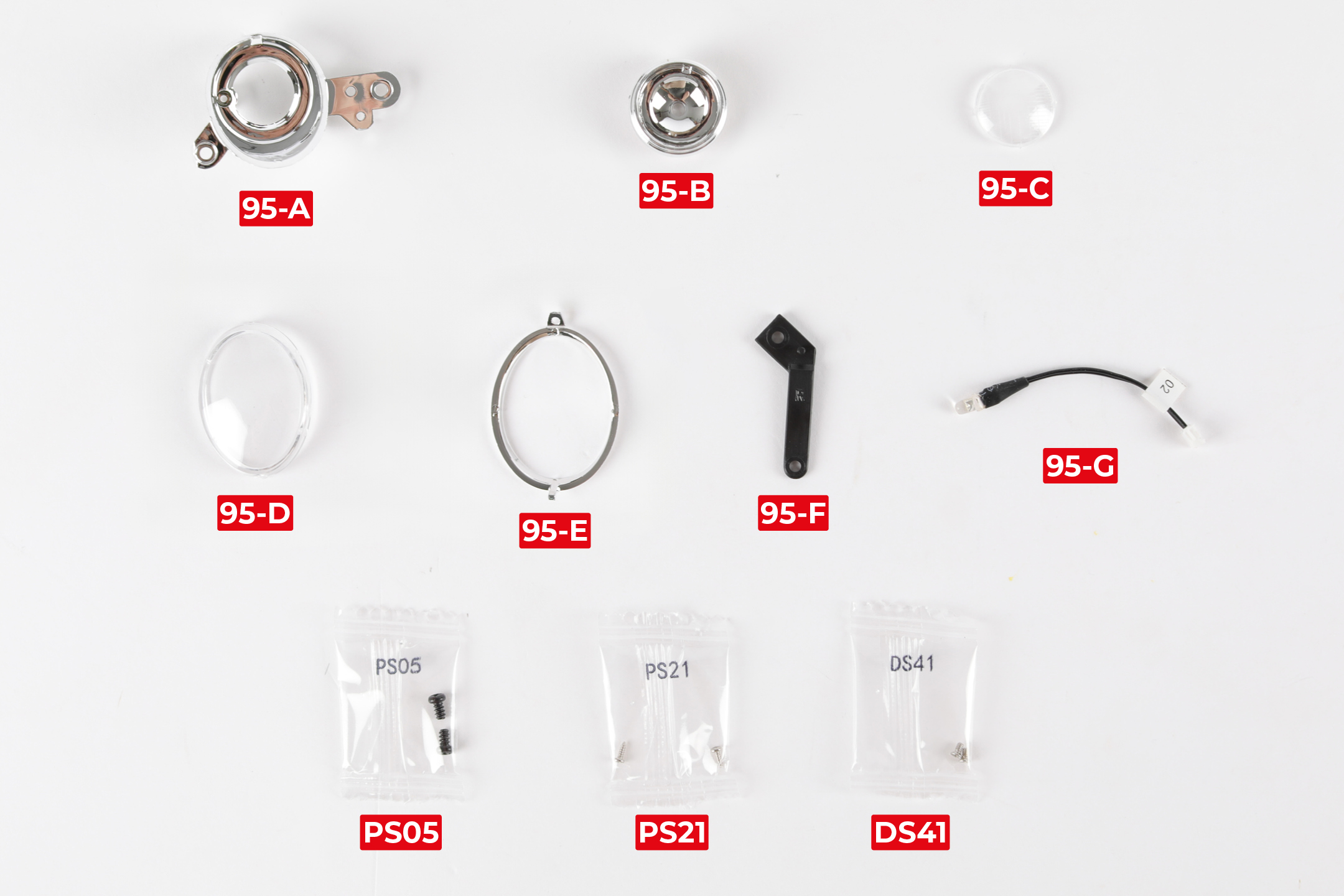 95-D Headlight cover | 2x PS21 screws |