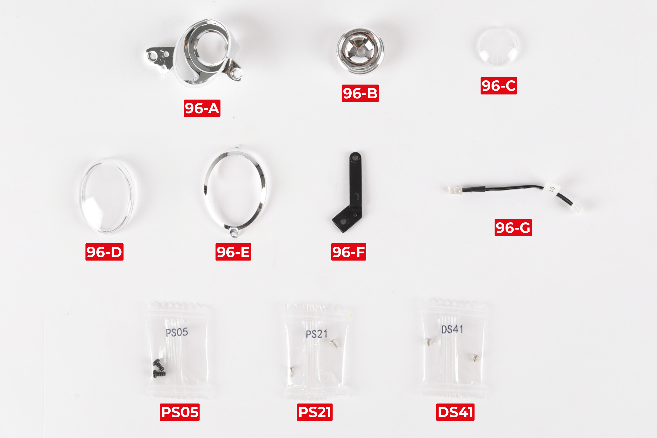 96-D Headlight cover | 2x PS21 screws |