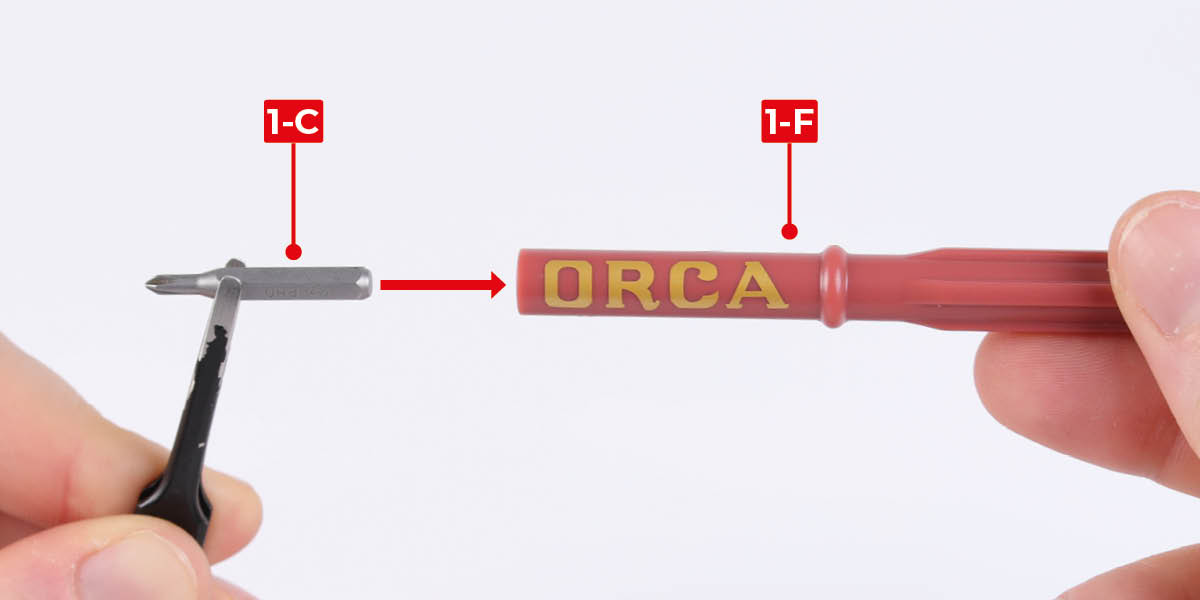Please make sure you don’t mix up the screws. They look quite similar, but the threads do vary slightly. Using the wrong screws may damage the parts. Only use the correct size screwdriver that fits the screw head firmly.