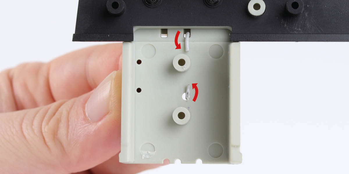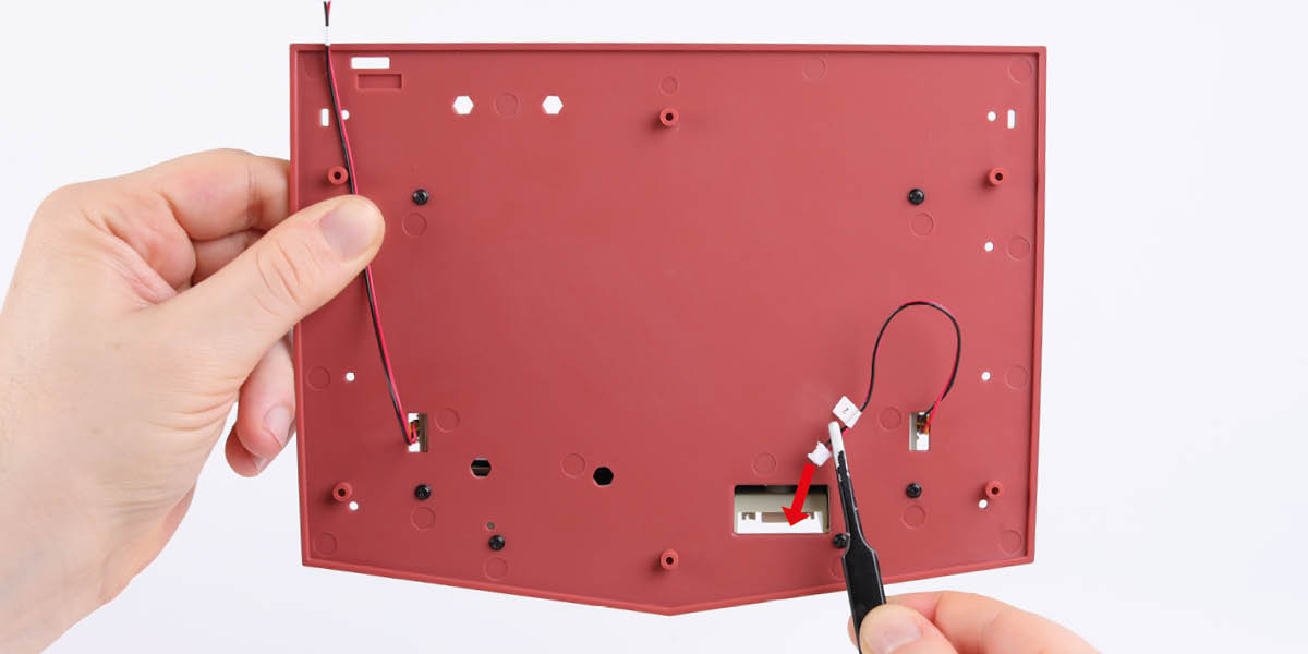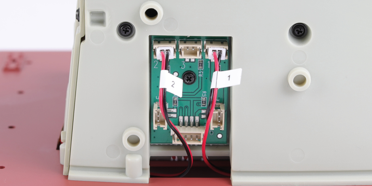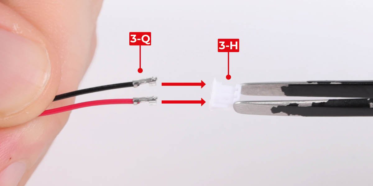 When plugging in wires, ensure the power is switched off. Tweezers can be used to fit the PVC wires by gripping carefully around 5mm from the end of the wire. If a wire needs to be removed from a socket, do not pull on the wire as this could damage the connection. Grip the plug with tweezers to remove it.
