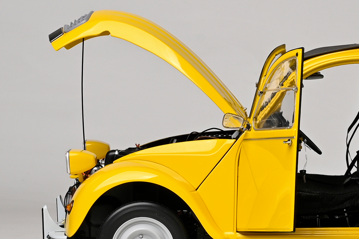 Our 1/8 scale model kit of the Citroën 2CV has been designed using 3D laser scanning technology of an original car together with movie footage. All the individual parts come pre-painted allowing you to create a museum-quality big-scale model.