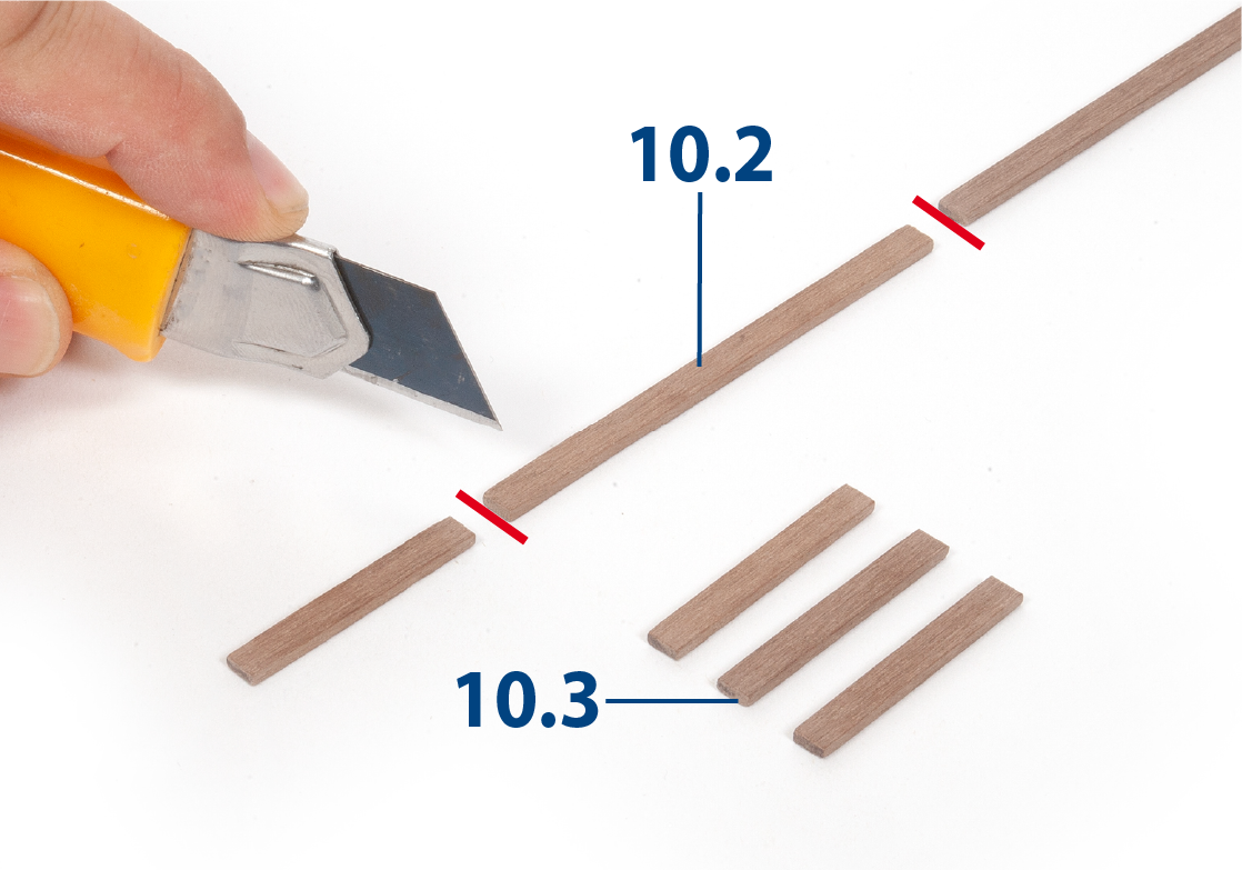 Tools you will need: cutting mat, pencil, cutting knife, fine-grit sandpaper or sponge sandpaper, file, white wood glue, super glue (cyanoacrylate glue), masking tape, set square, hacksaw, sanding block, 30 cm steel ruler, clamps, drill, moulding scriber tool