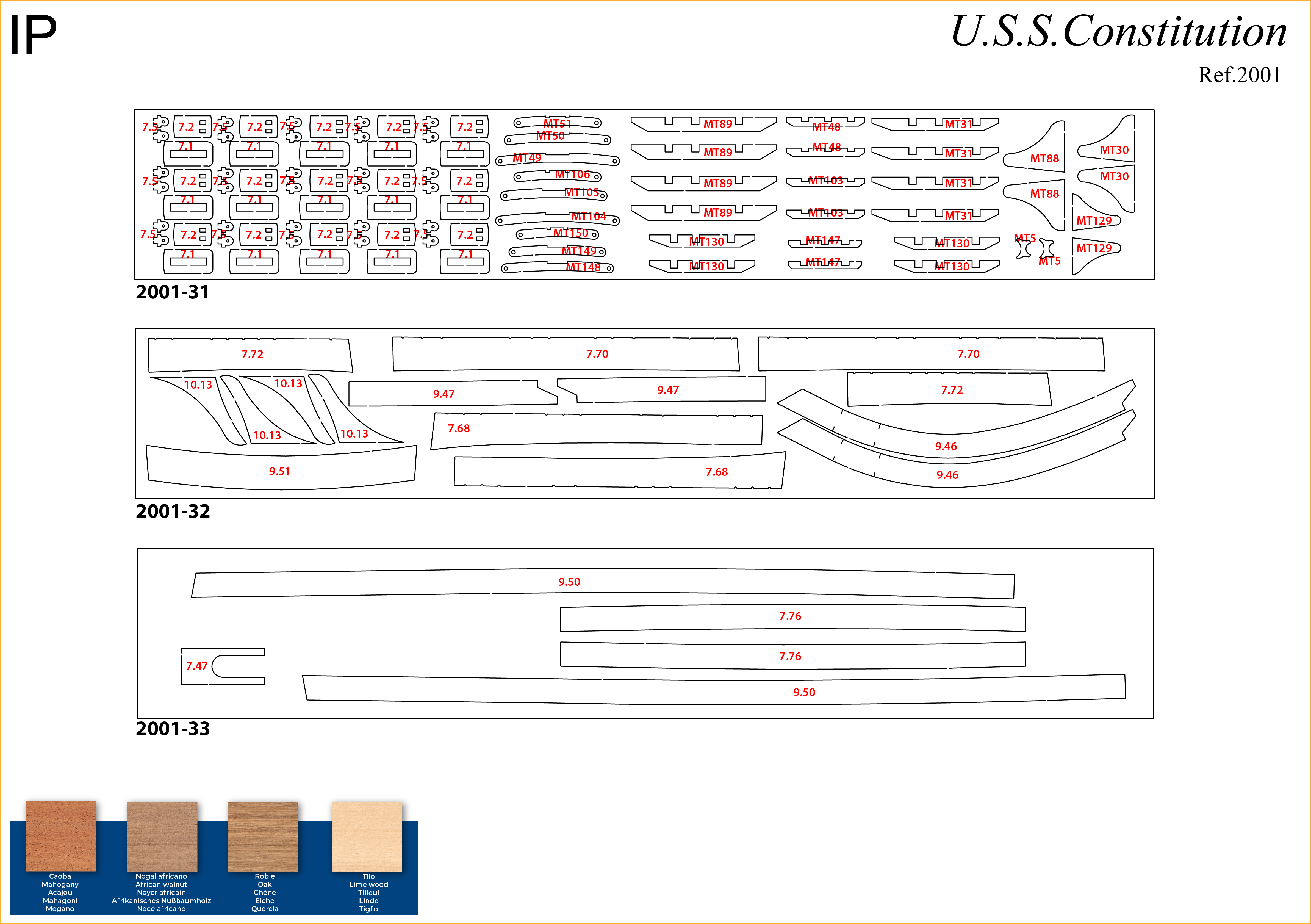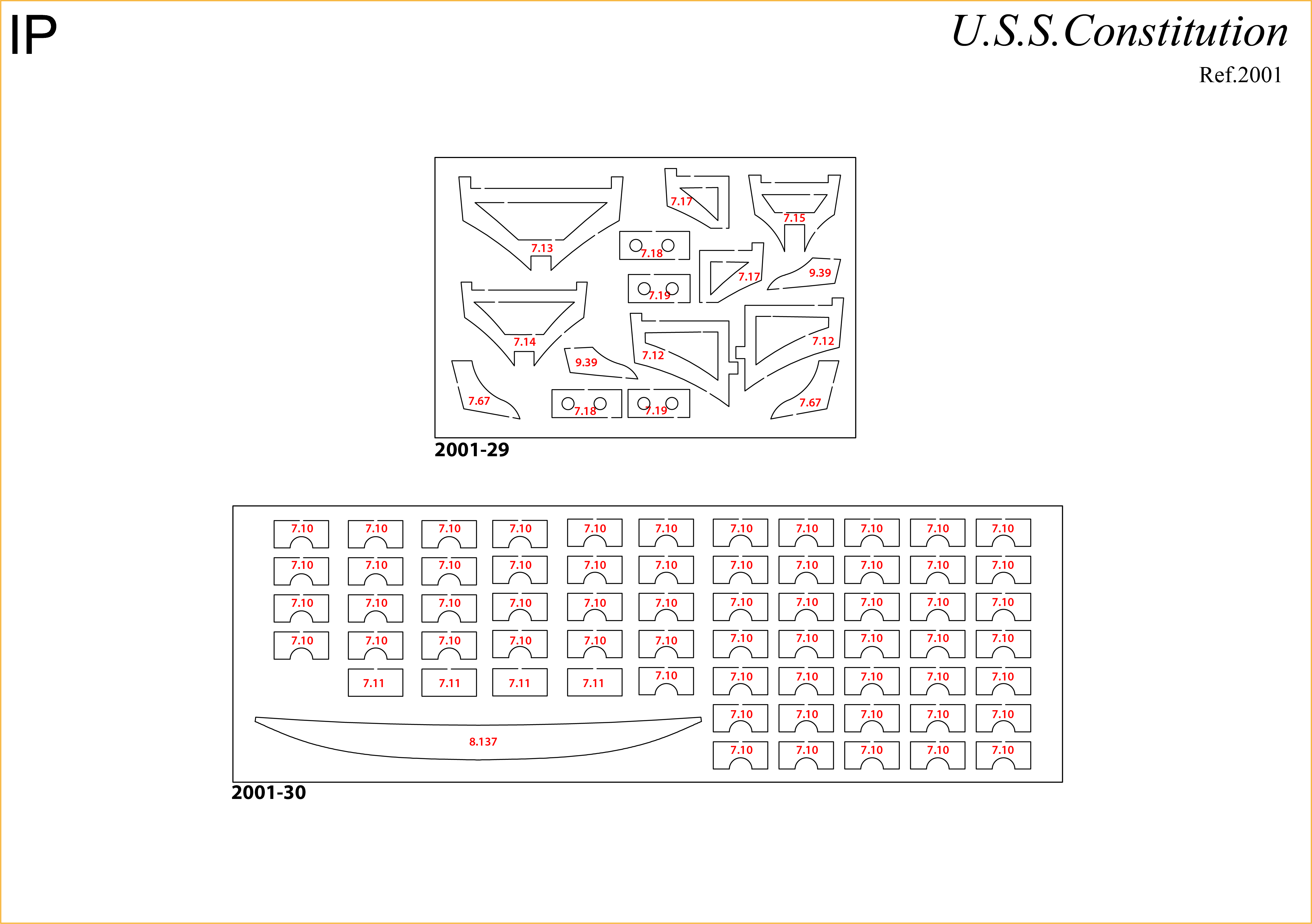 The IP sheets displayed below are drawings of laser-cut parts and photo-etched brass parts and will serve as a guide for identification of some parts.