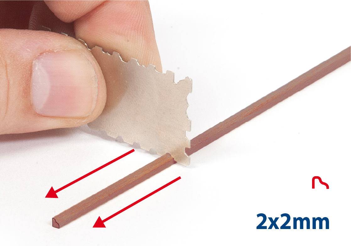 Tools you will need: cutting mat, pencil, cutting knife, fine-grit sandpaper or sponge sandpaper, file, white wood glue, super glue (cyanoacrylate glue), masking tape, set square, hacksaw, sanding block, 30 cm steel ruler, clamps, drill, moulding scriber tool