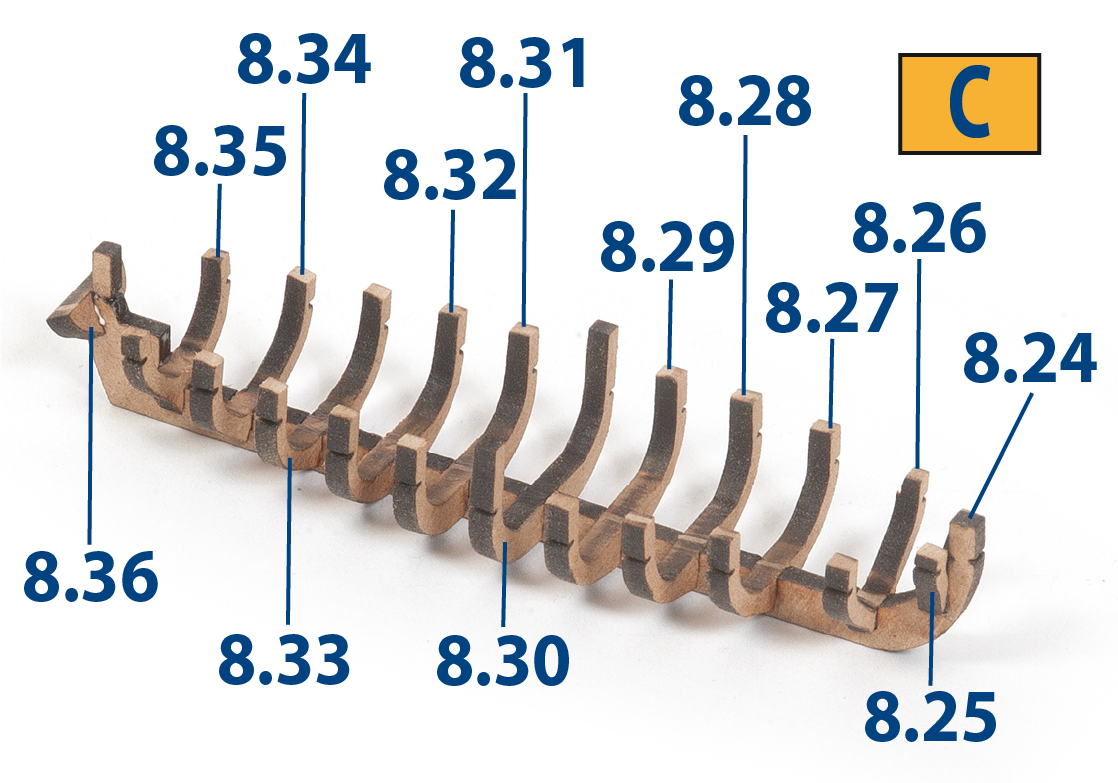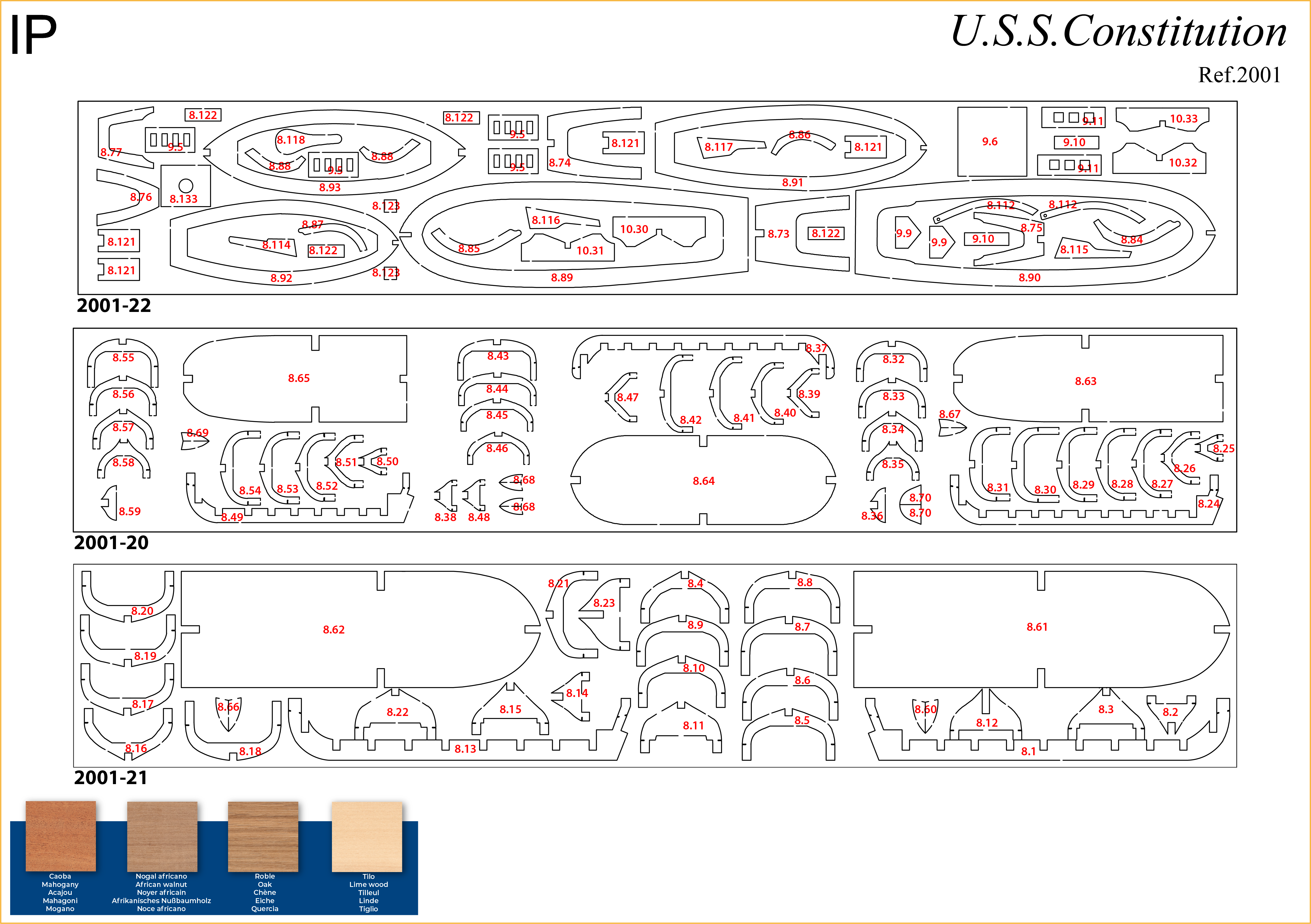 The IP sheets displayed below are drawings of laser-cut parts and photo-etched brass parts and will serve as a guide for identification of some parts.