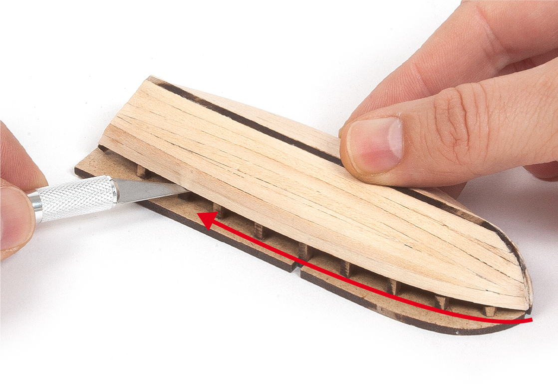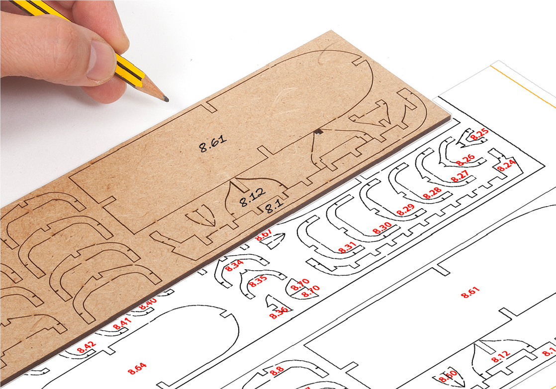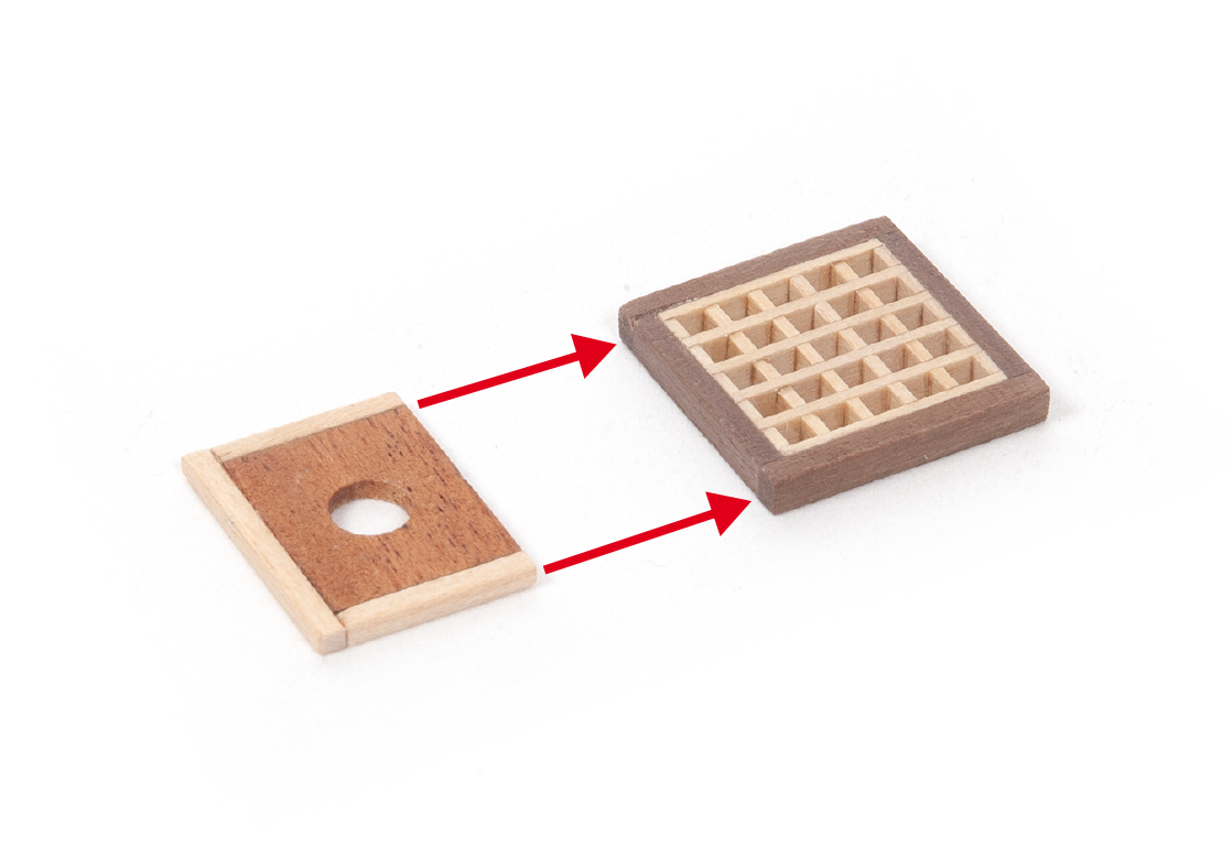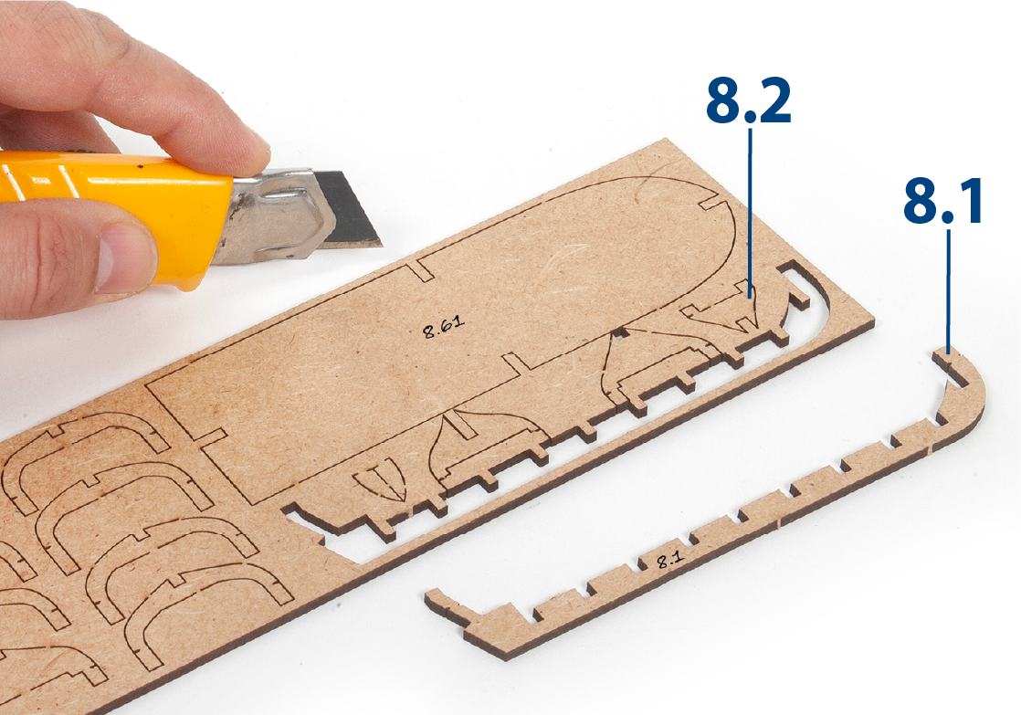 When removing a part, cut the ribs that join the part to the wooden plate with a cutter.