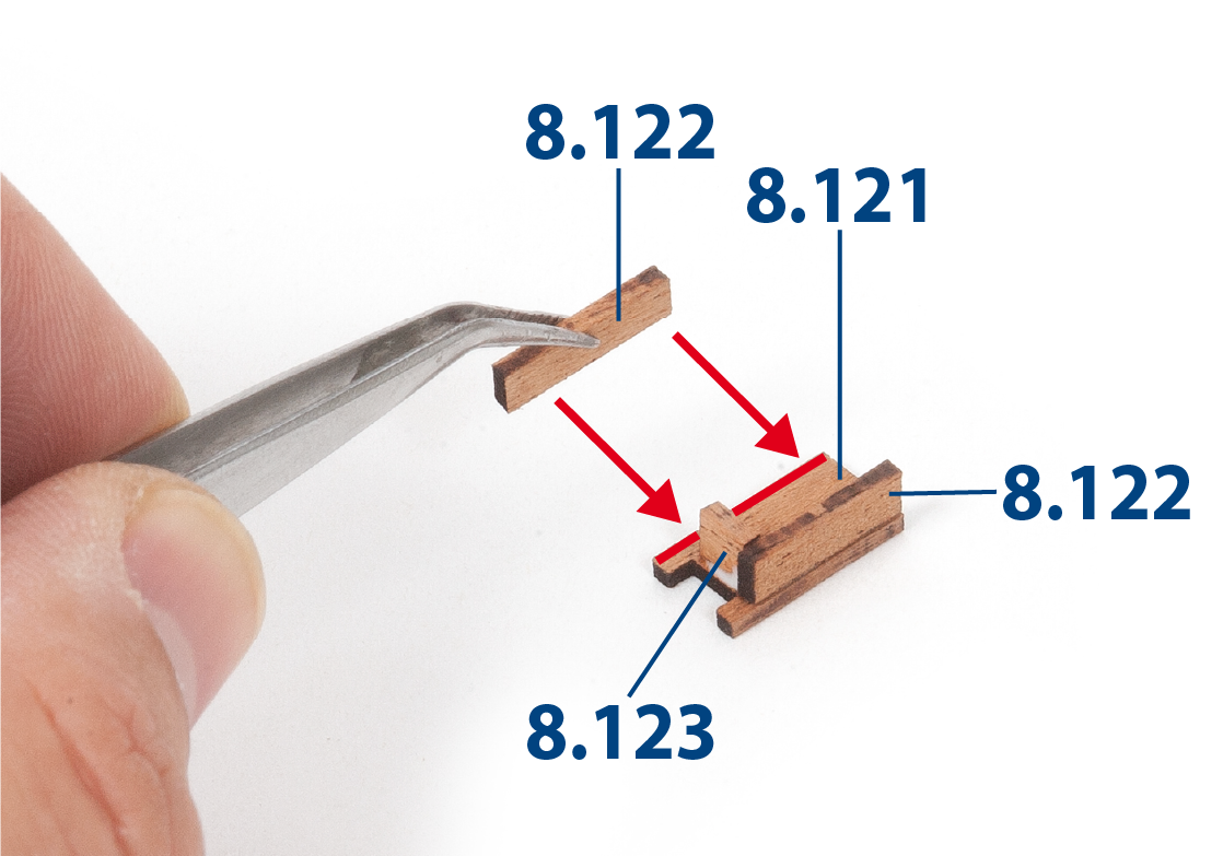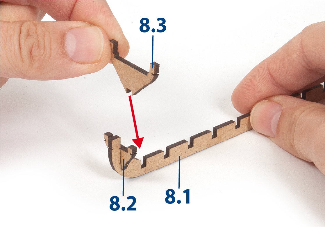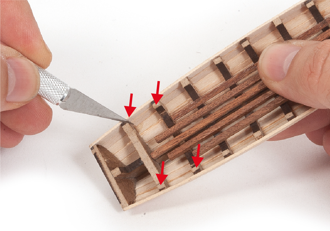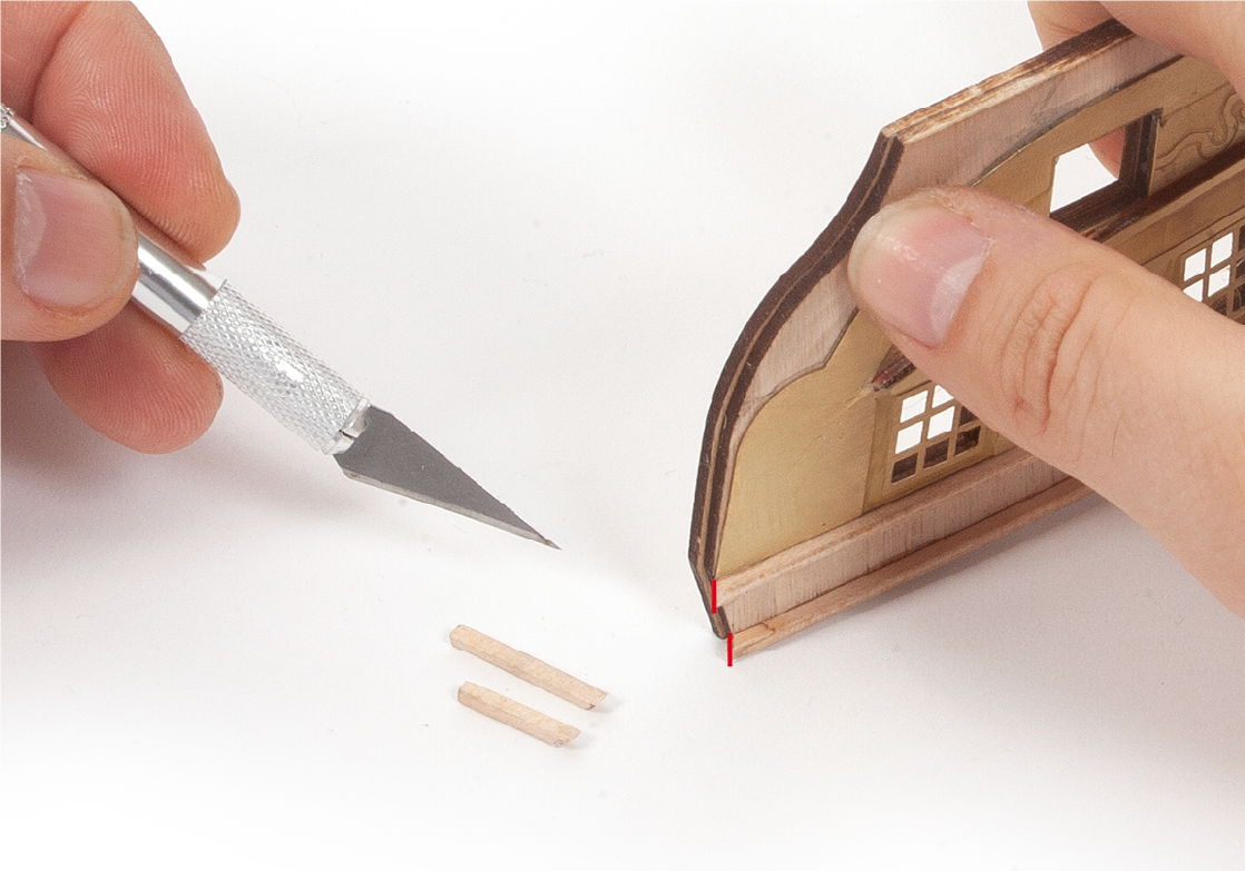 When removing a part, cut the ribs that join the part to the wooden plate with a cutter.