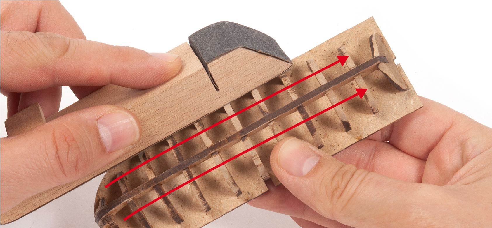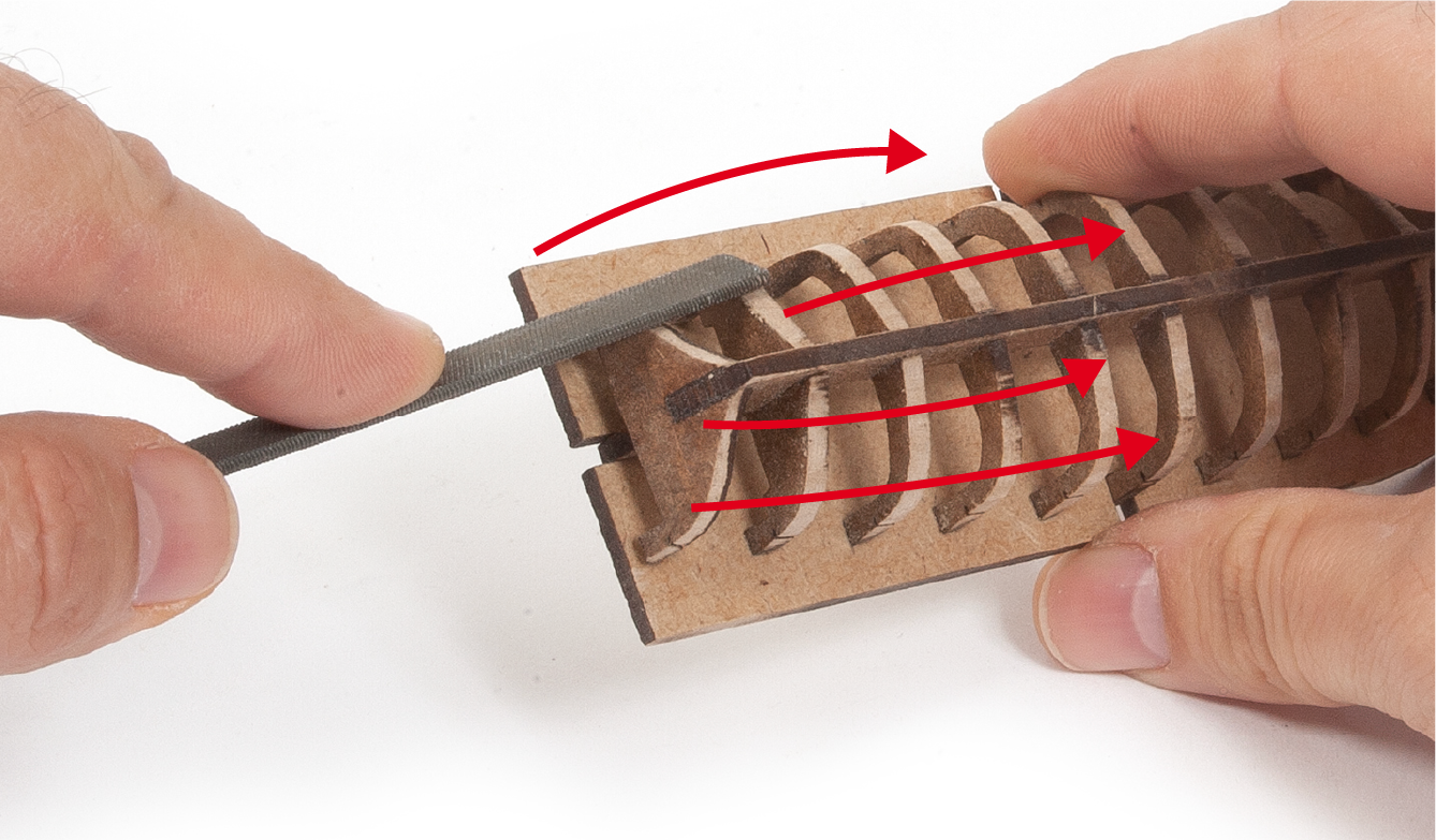 Tools you will need: cutting mat, pencil, cutting knife, fine-grit sandpaper or sponge sandpaper, file, white wood glue, super glue (cyanoacrylate glue), masking tape, set square, hacksaw, sanding block, 30 cm steel ruler, clamps, drill, moulding scriber tool