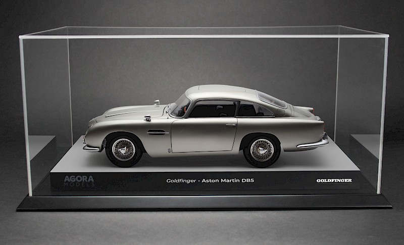 The most iconic car in the world, the Aston Martin DB5, debuts in the movie Goldfinger when Q introduces 007 to the Silver Birch Aston Martin DB5 and most of its gadgets, leaving one or two with an element of surprise when its full array comes into effect.