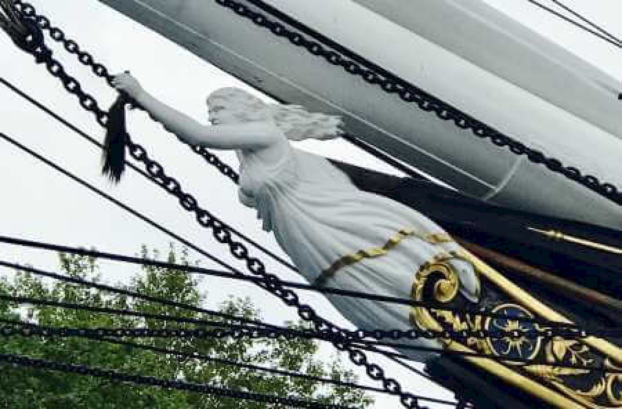 The name 'Nannie' comes from a poem by Robert Burns called Tam O'Shanter. In the poem, a farmer called Tam comes across a group of witches, including a beautiful witch named Nannie. Tam calls to the witches and they chase after him, then, just as his horse leaps to safety, Nannie grabs the horse's tail and pulls it off. This is why Cutty Sark's figurehead is holding a horse's tail.