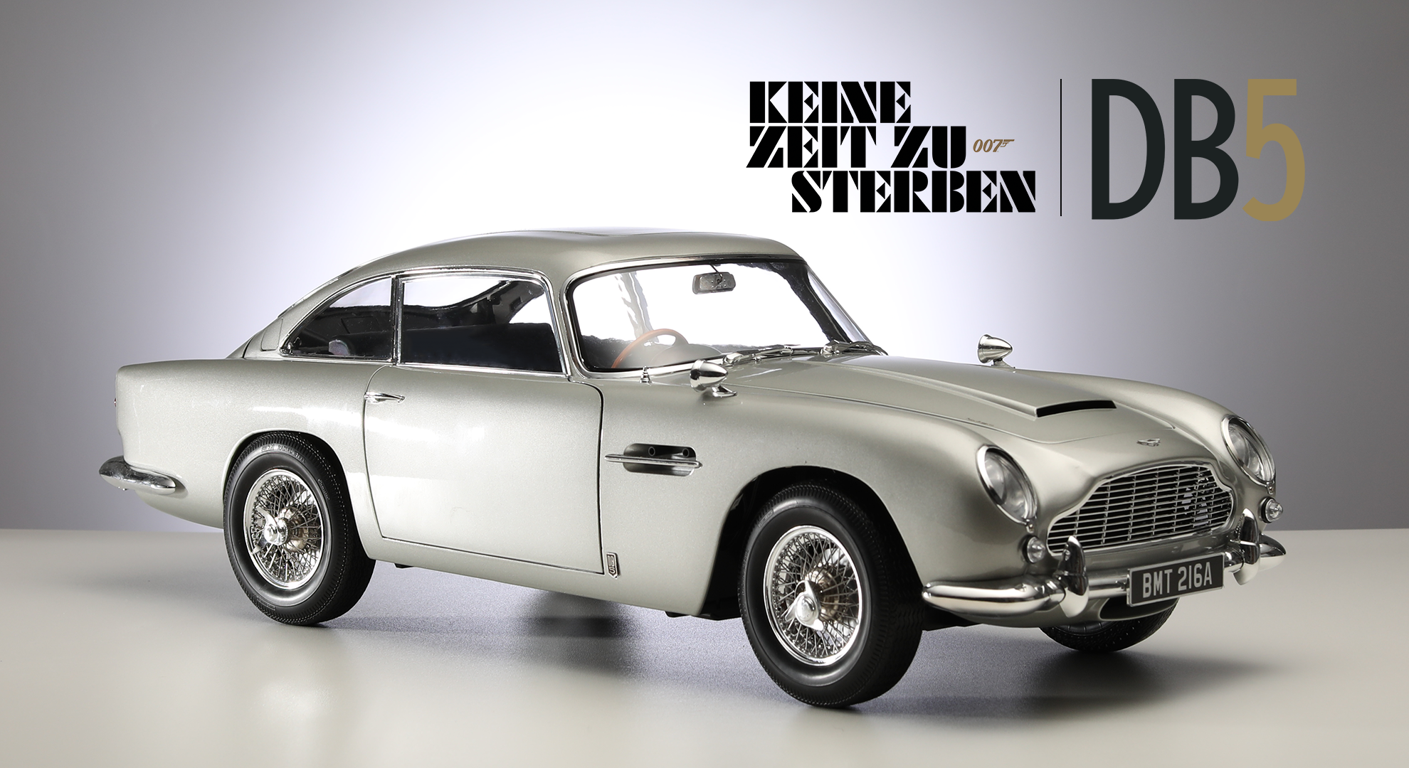 Acht DB5-Stunt-Repliken wurden von Aston Martin für die Dreharbeiten gebaut und zwei Autos, die auch in GoldenEye, Der Morgen stirbt nie, Skyfall und Spectre vorkommen, wurden für Nahaufnahmen verwendet