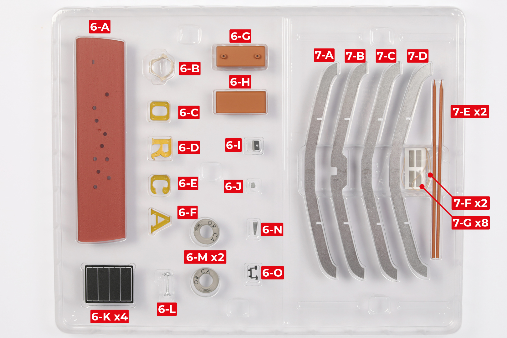Im Laufe dieses Baus erhalten Sie viele Teile, die Sie sofort montieren – gemäß den Anweisungen in der entsprechenden Phase – und andere Teile, die Sie sicher zur Seite legen sollten, für die Verwendung in zukünftigen Montagephasen.