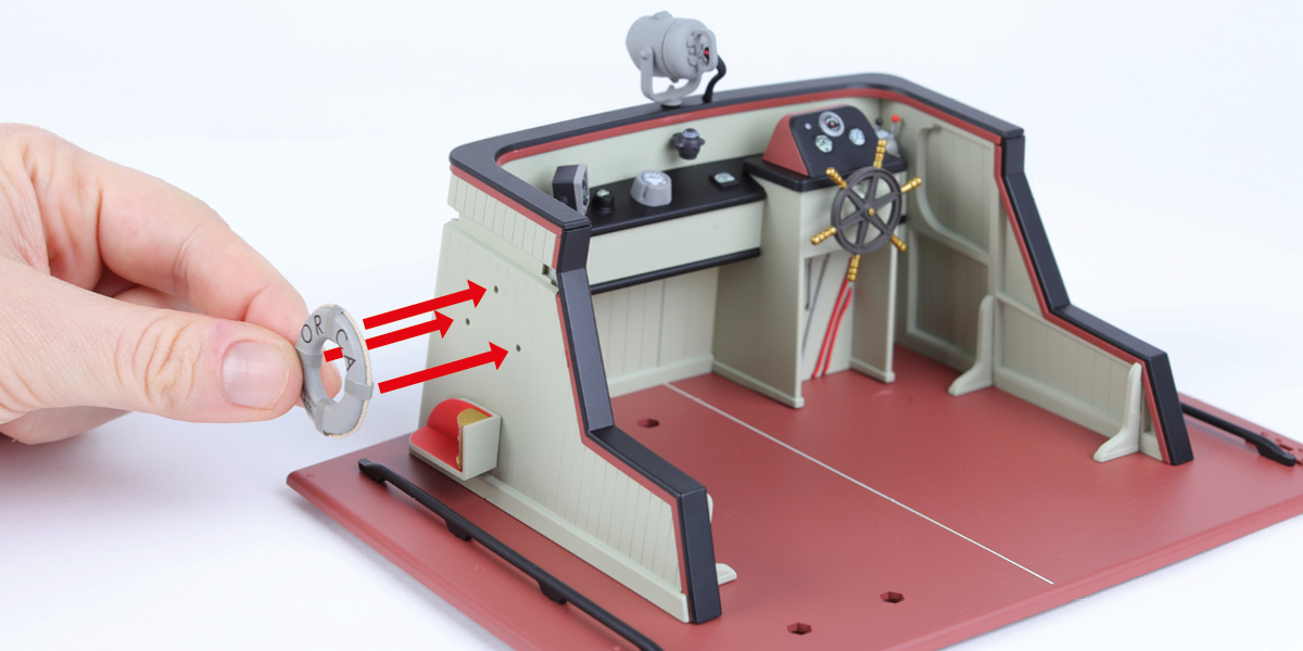 Einige Teile benötigen etwas Klebstoff für die Montage. Bitte tragen Sie den Klebstoff sparsam auf und verwenden Sie einen Cocktailspieß, damit Sie nicht zu viel verwenden oder den Klebstoff zu stark auftragen. Wir empfehlen Sekundenkleber-Gel oder extra dünnen flüssigen Modellbaukleber. Wo möglich, sollten Teile vor dem Verkleben zur Probe eingepasst werden.