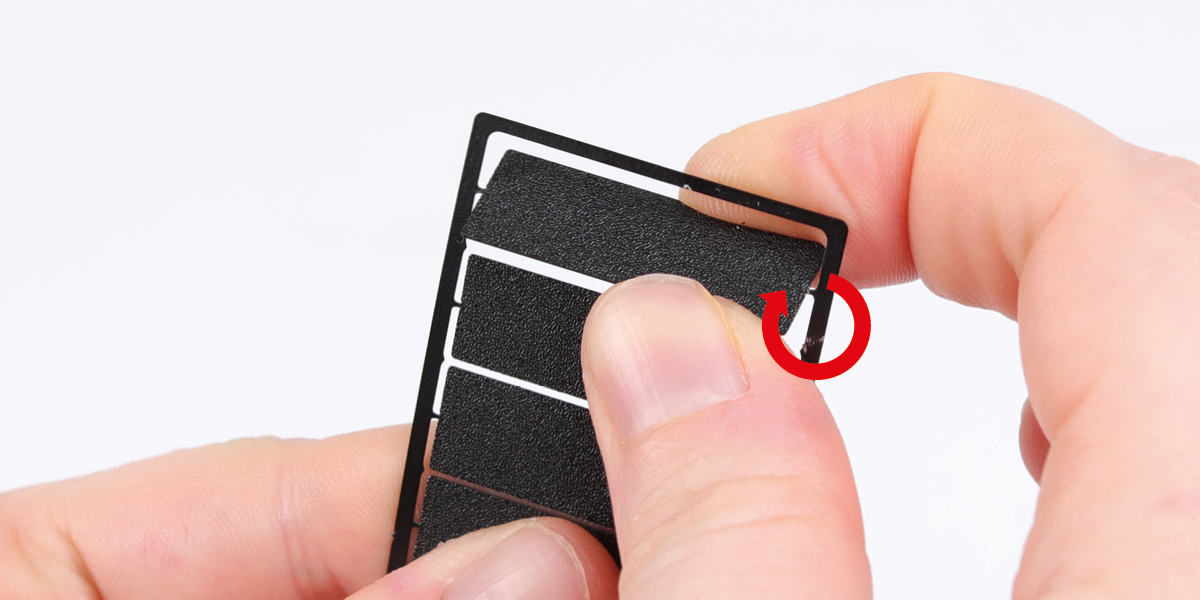Schneiden Sie Teile mit Seitenschneidern oder einem Bastelmesser von einem Spritzling (Rahmen) ab. Seitenschneider sind meistens am einfachsten.