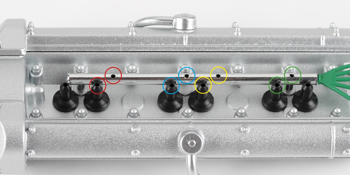 Algunas partes requerirán un poco de pegamento para el montaje. Aplique el pegamento con moderación y use un palillo de cóctel para que no use demasiado ni aplique el pegamento demasiado pesadamente. Recomendamos gel de superpegamento o pegamento líquido extra fino para modelismo. Cuando sea posible, las partes deben probarse en su lugar antes de pegarlas.