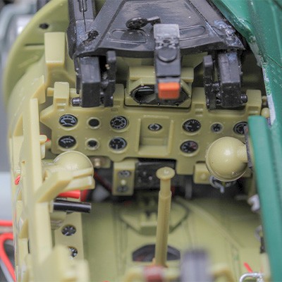 Sliding the canopy backwards reveals a cockpit laid out in such exquisite detail it looks every bit the fully operational aircraft. A highly skilled pilot and interior lighting enhances the dynamic feelings evoked.