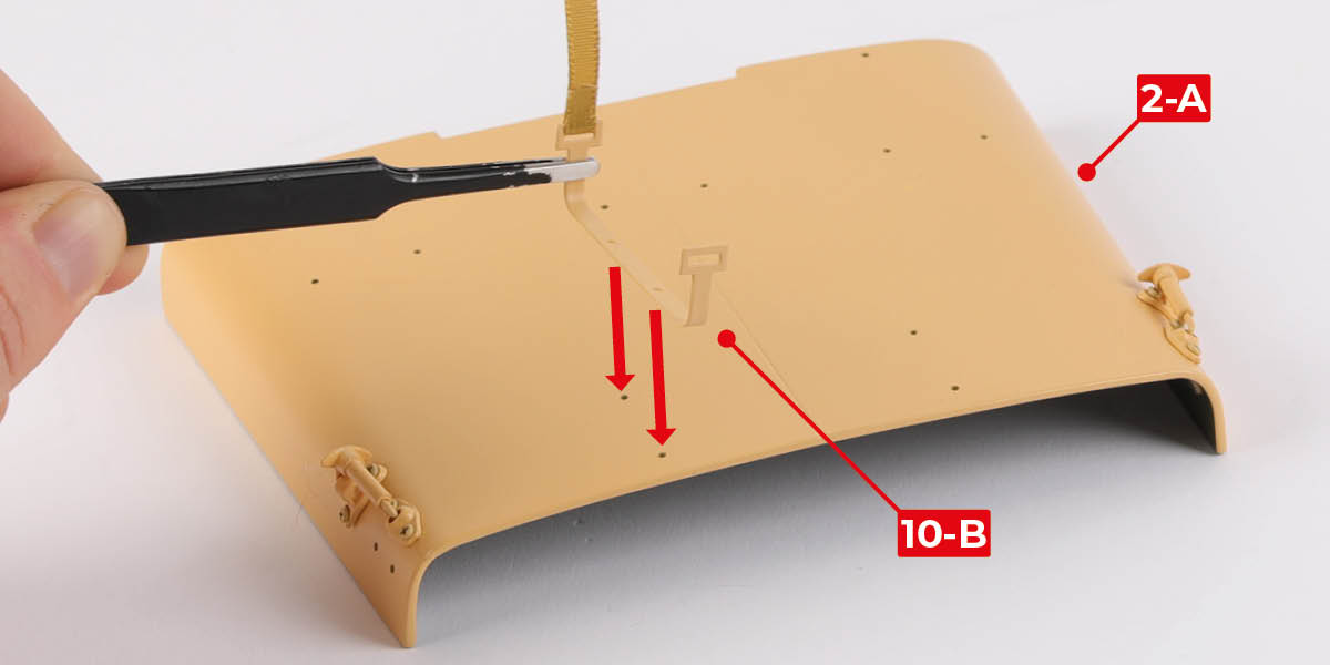 Some parts will require a little glue for assembly. Please apply glue sparingly and use a cocktail stick so that you don’t use too much nor apply the glue too heavily. We recommend superglue gel or Extra Thin Liquid modeling glue. Where possible, parts should be test-fitted in place before gluing.