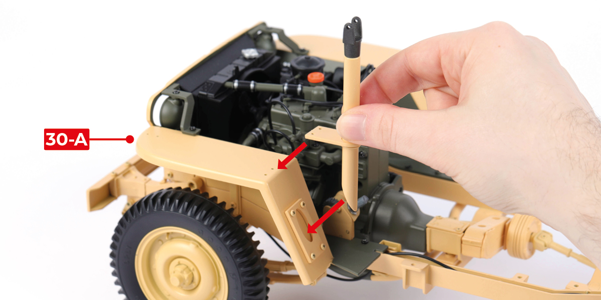 Left and Right! When building your SAS Willys Jeep, the left- or right-hand side refers to that side as if you are sitting in the car.