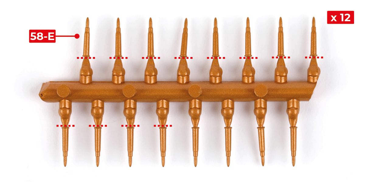 Some parts will require a little glue for assembly. Please apply glue sparingly and use a cocktail stick so that you don’t use too much nor apply the glue too heavily. We recommend superglue gel or Extra Thin Liquid modeling glue. Where possible, parts should be test-fitted in place before gluing.