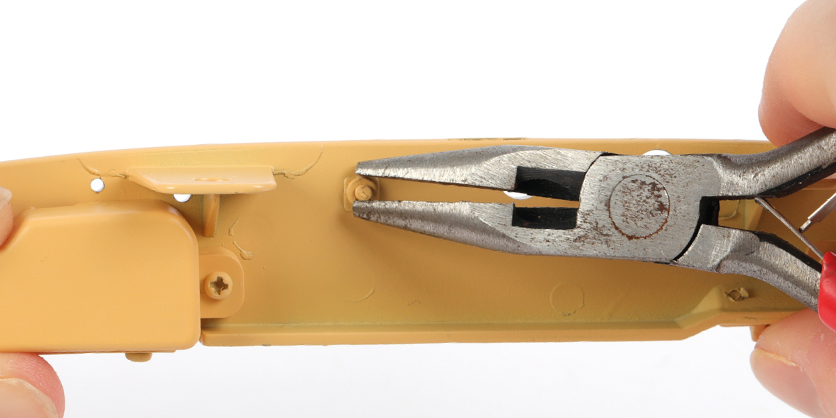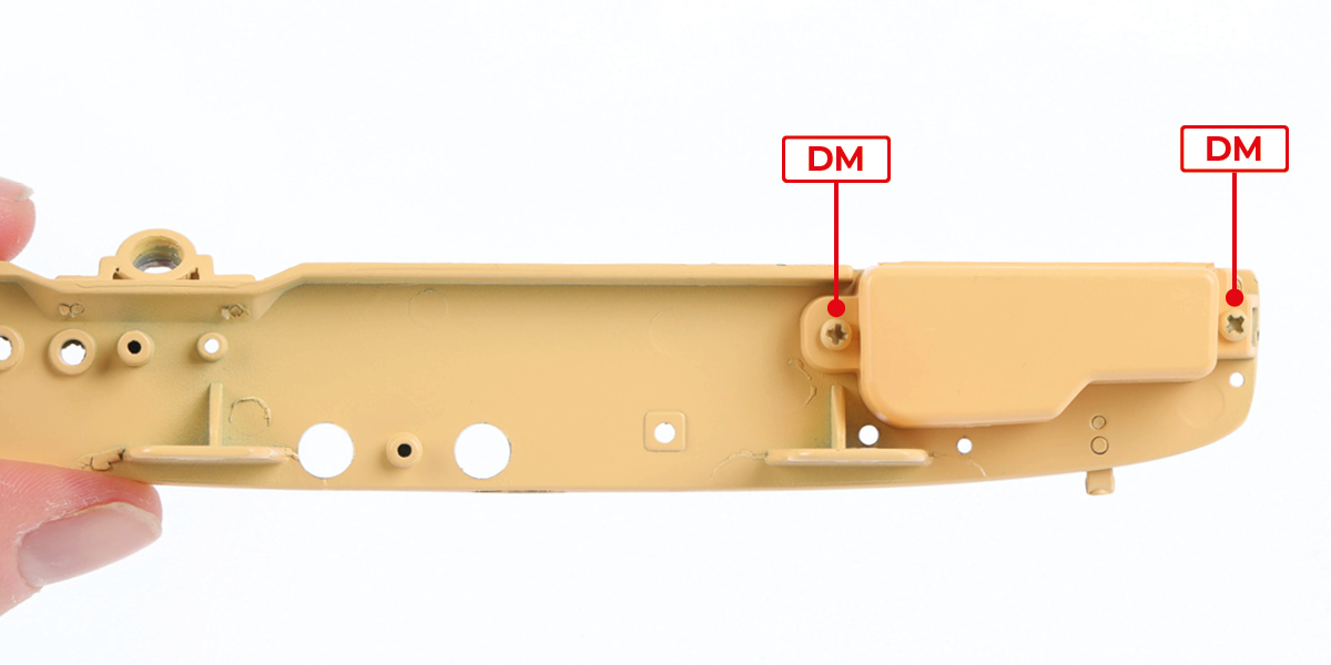If the paint on the painted screws is scratched during the build, you can repaint it with Sand yellow (RAL 1002).