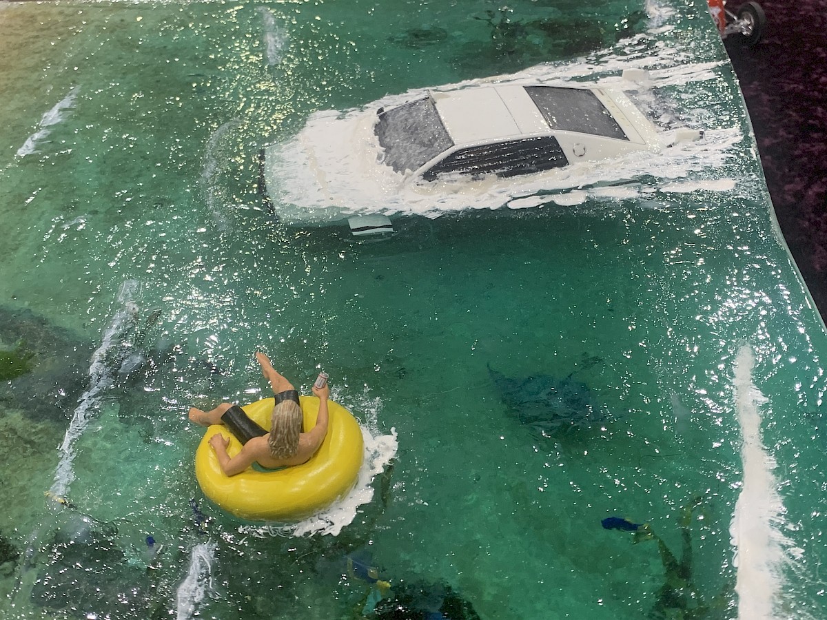 If ever the skill ceiling of model making could be summed up in one photo this must certainly be it. I am always drawn to recreation scenes from movies (especially Bond!) because of all the different elements, from the centre piece to the human figures to the terrain. The positioning of the Esprit not being in the centre but down at the bottom was a clever take, with most of the detail being around the perimeter of the scene. It lets you really appreciate the texture of the sand and ocean, which by the way, are exceptional.